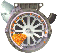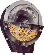 Consiste en un plato vertical giratorio con doce dedos de lámina metálica presionados con resortes y accionados con levas que al abrir y cerrar aseguran individualmente los granos y los llevan a una correa de canjilones que los dejan caer en el tubo de descarga.